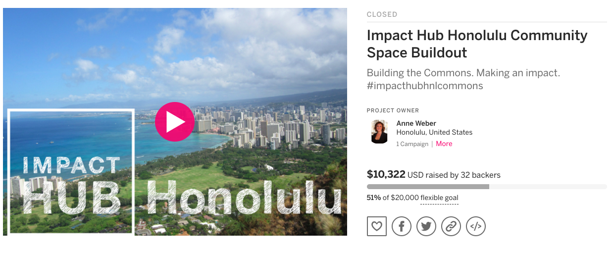 In 2017, Impact Hub HNL launched its first crowdfunding campaign on Indiegogo to raise scholarship funds for local groups and organizations who needed financial support. In the campaign the community contributed over $10,000, and we able to provide scholarships for 35 memberships, events, and programs, proving that crowdfunding can be a powerful tool for increasing equity.